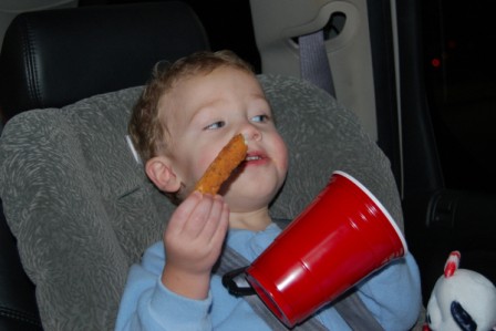 Despite Mommy's weird face, Luca was too cute not to post this picture...sittin' in the rocker and eatin' some crackers