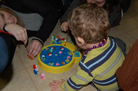 Playing Elefun and the fishing game with Amanda and Lindsay