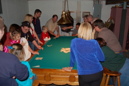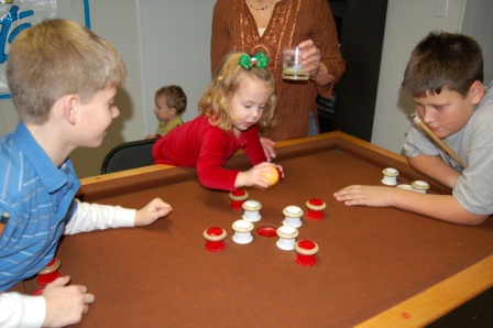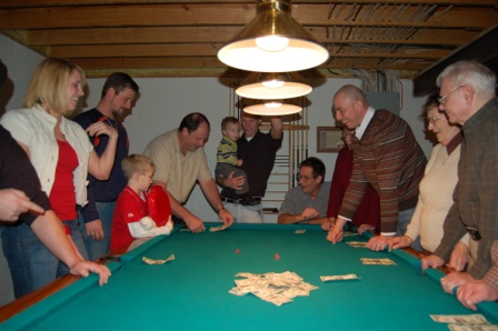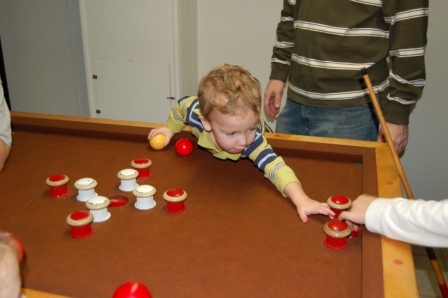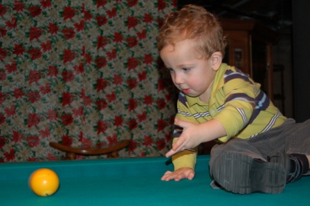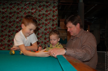 Luca playing pool with Christian and Papa John