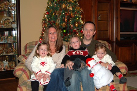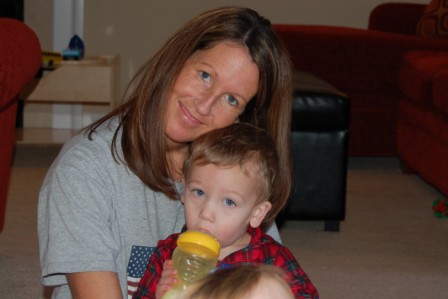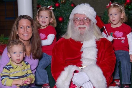 (The kids all talked with Santa just fine but when it came time to sit with him for the picture, forget it...that's how Mommy ended up in the pic)