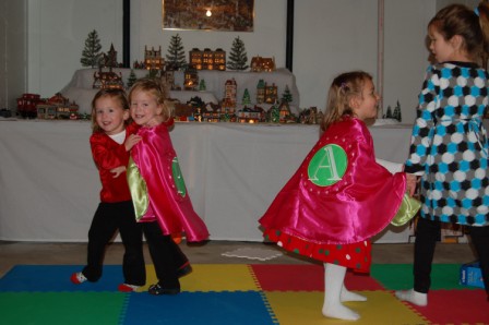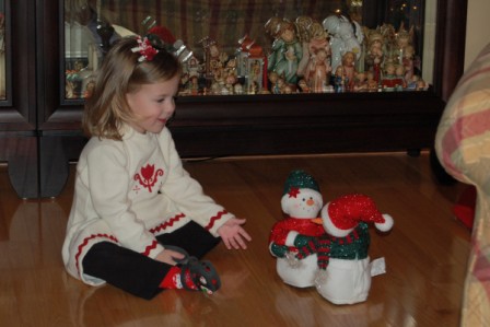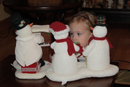 Perry and Ella love the dancing/singing snowmen