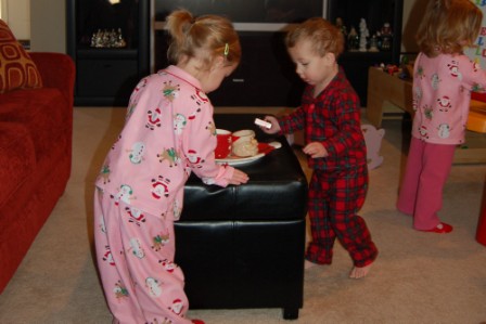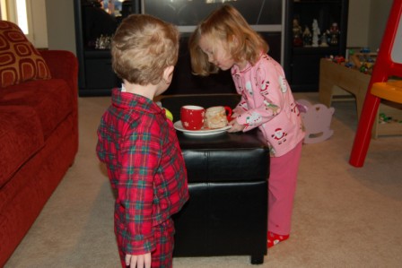 Putting out milk and cookies for Santa and water and carrots for the reindeer
