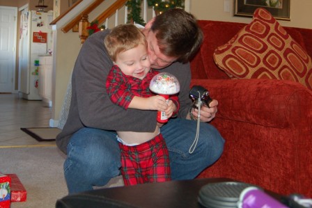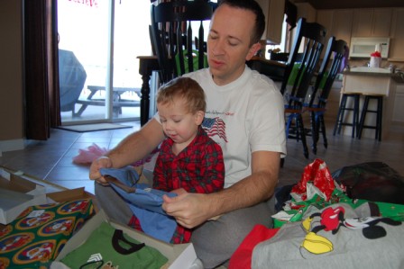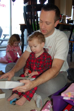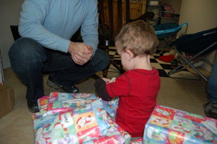 Finally opening some presents with Daddy