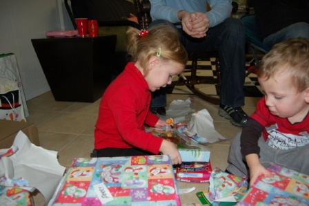 Perry and Ella opening presents