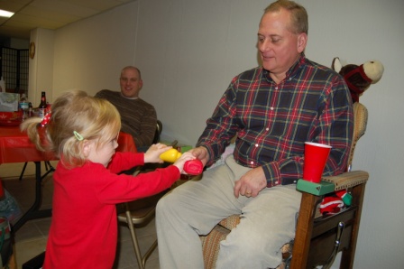 Perry showing Grandpa her snowglobe