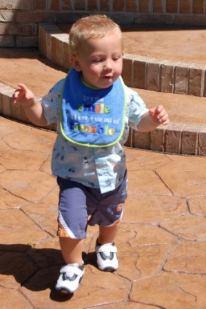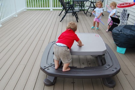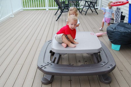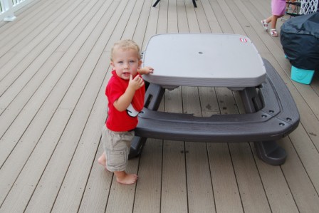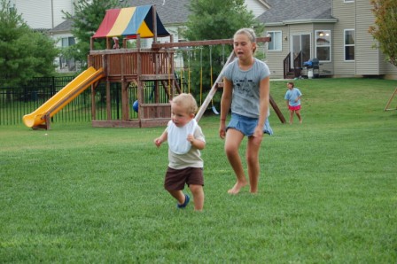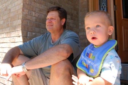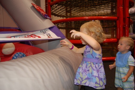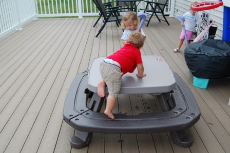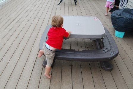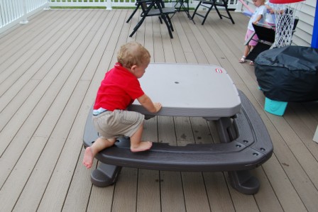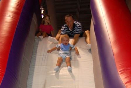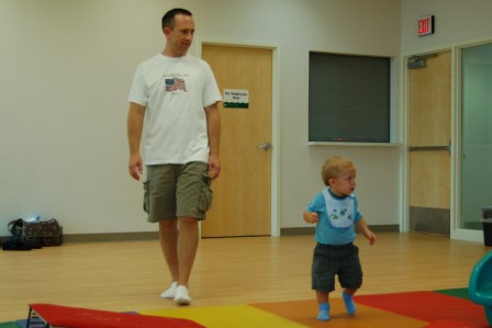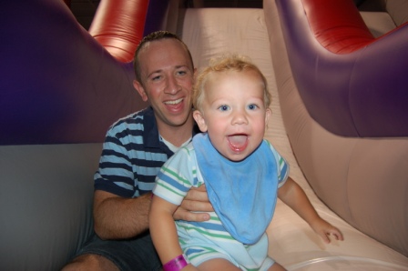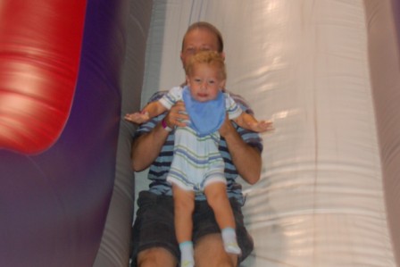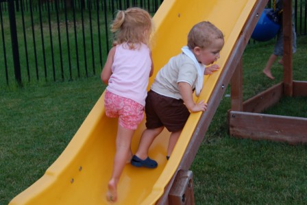 Daddy and Luca walking around...Luca was trying to tell Lawton to stop hogging the slide