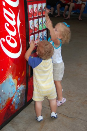 Playing the "bang on the Coke machine" game, waiting for the train to come