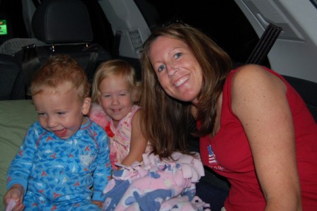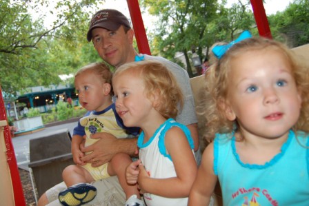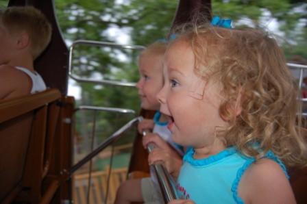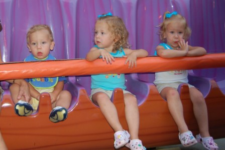 All 3 kiddos (and Mommy) on Tweety's Twee House ride