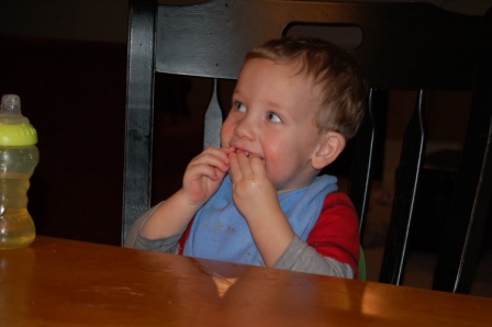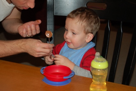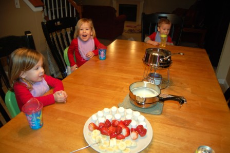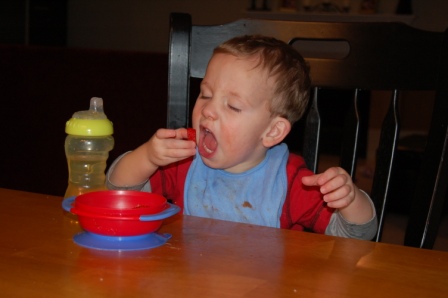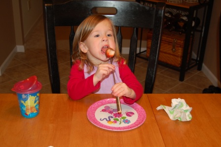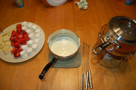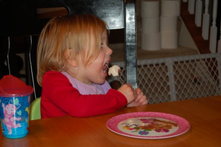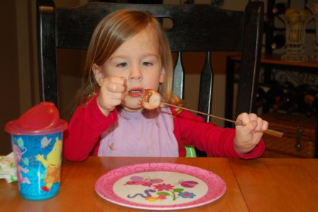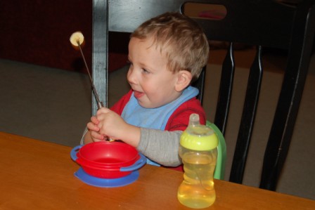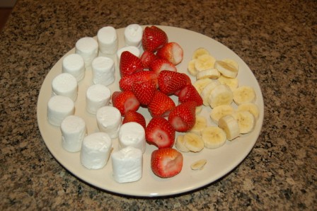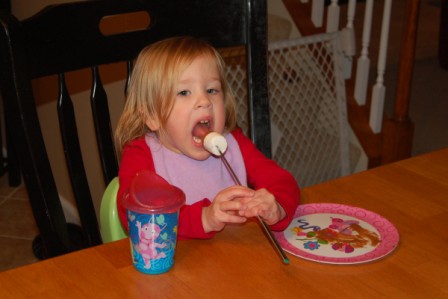 Luca didn't quite get the hang of it, so he enjoyed plain marshmallows and strawberries