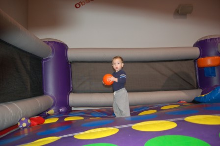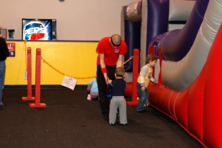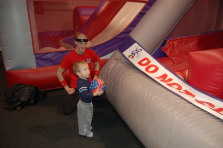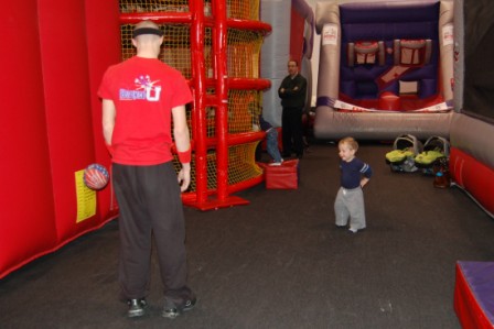 Luca made friends with the Bounce U guy