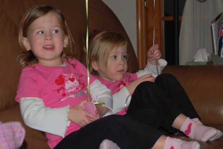 Chillin' on the couch with their balloons