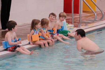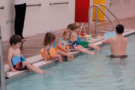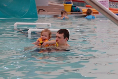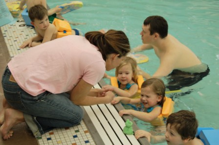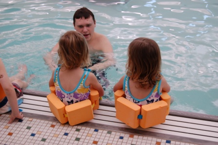 Perry and Ella's first "big girl" swim class at the Y