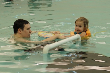 Perry swimming with Mr. Trevor