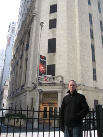 Dave with the bull and the New York Stock Exhange building