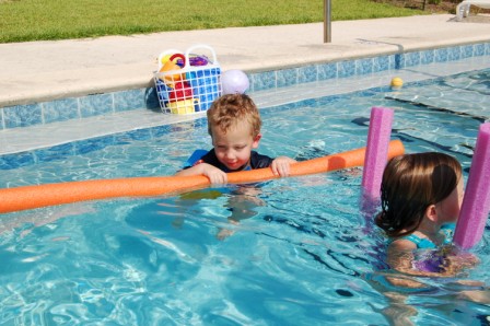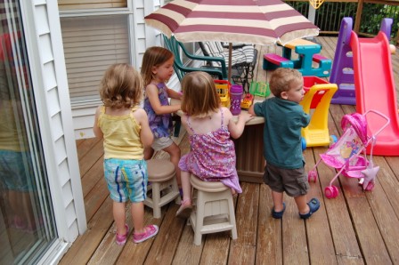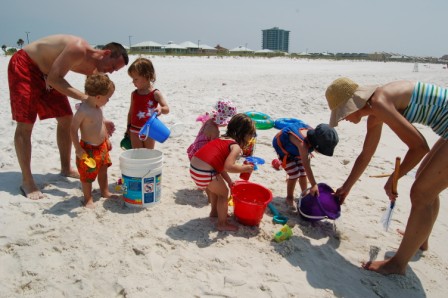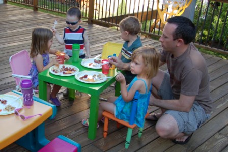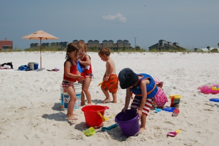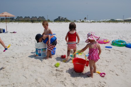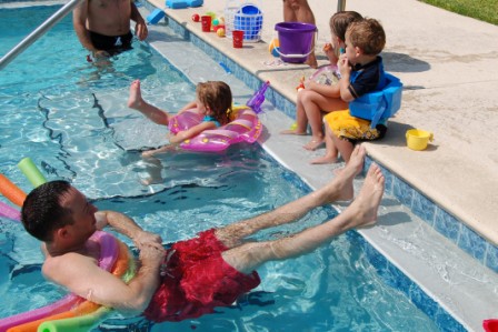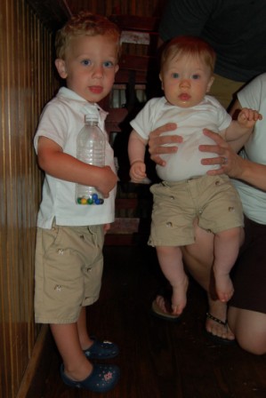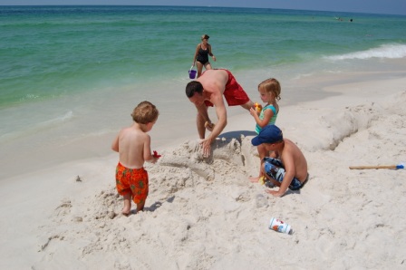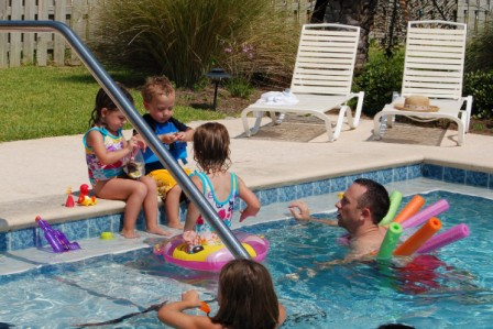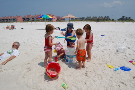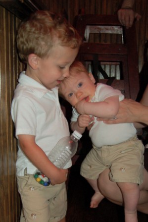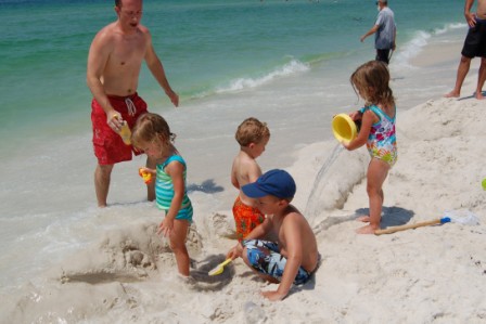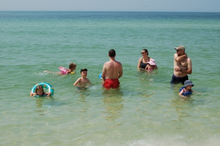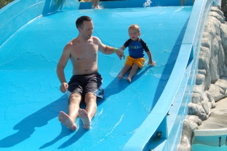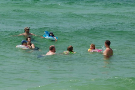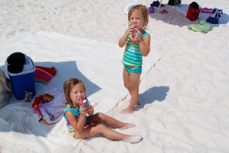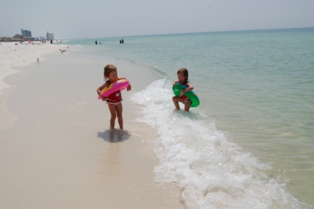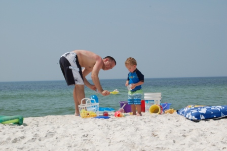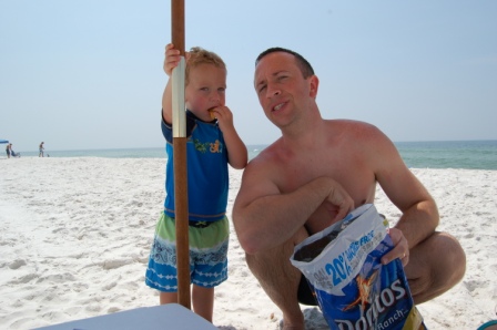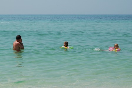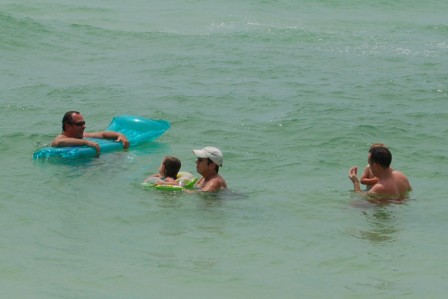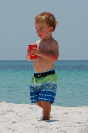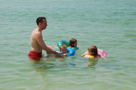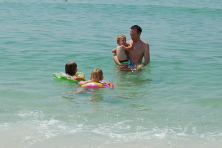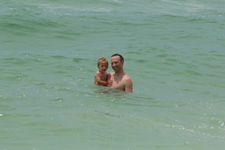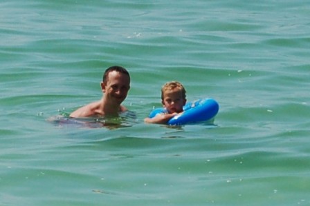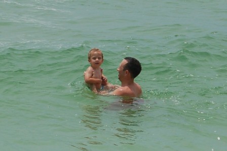 Daddy and Luca in the ocean...Ella and Perry taking a juice box break
