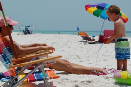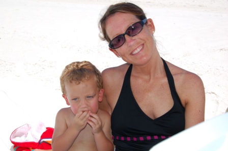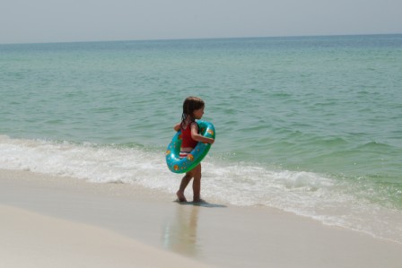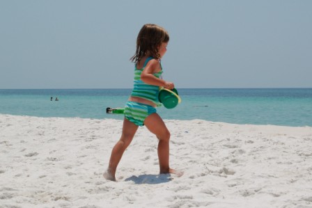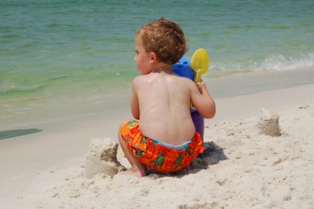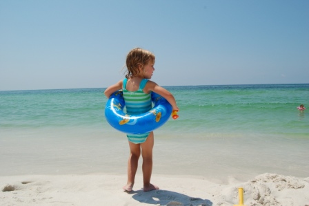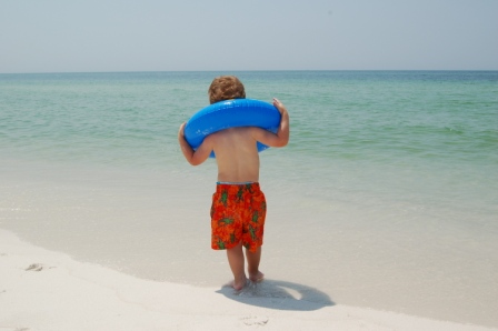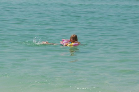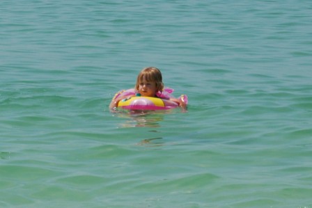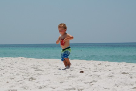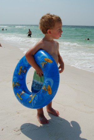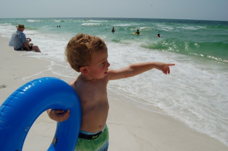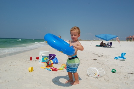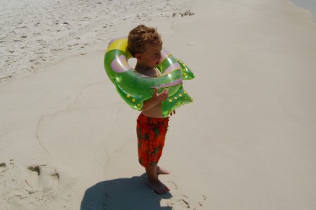 Luca discovered what a fun game this was...let go of the ring and watch the Figges run down the beach after it