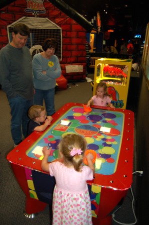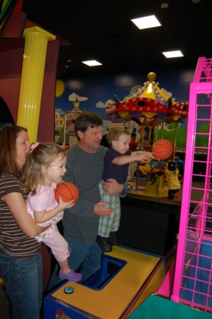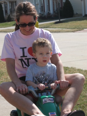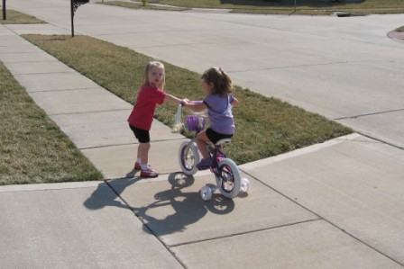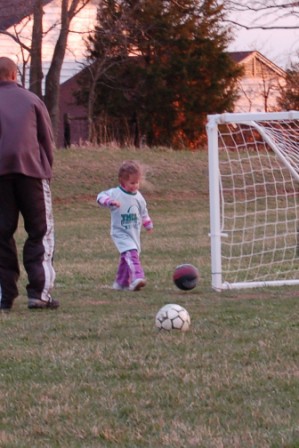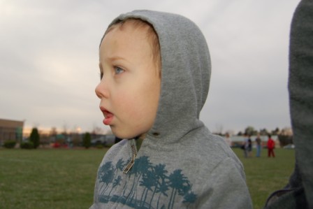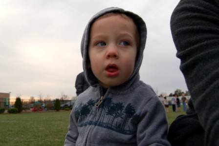 Lukey watching his big sissies...and wondering why we're sitting outside in the cold