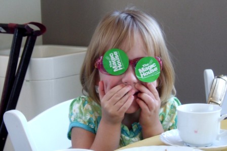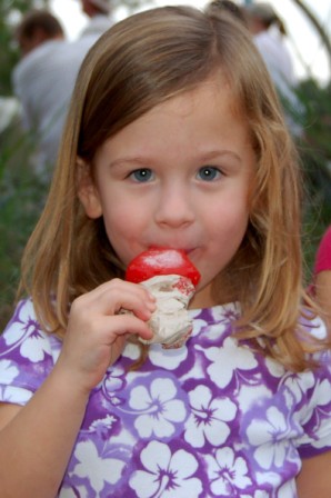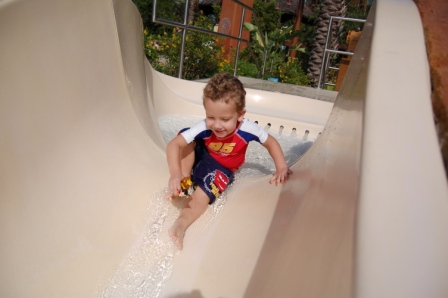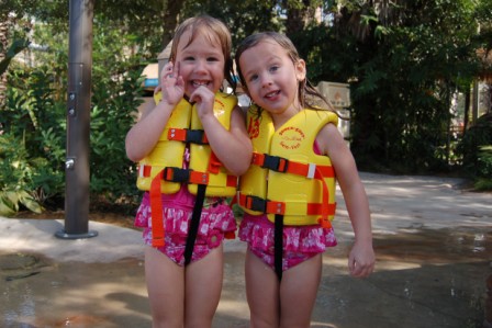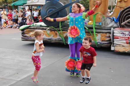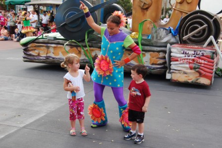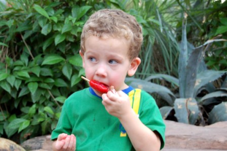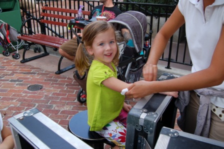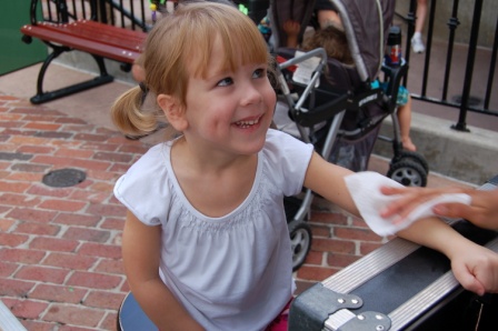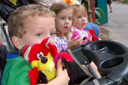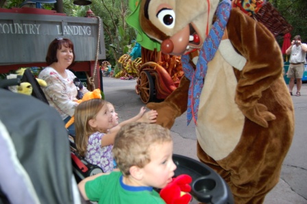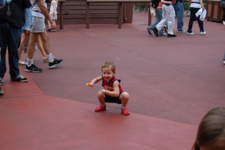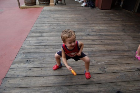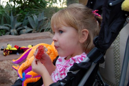 Enjoying some fruit bars while Mommy/Daddy and Grandma/Grandpa took turns riding Expedition Everest