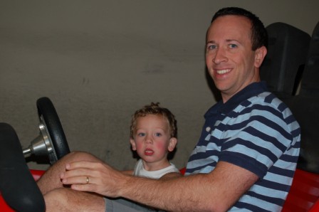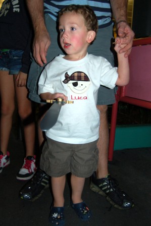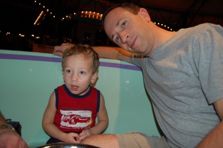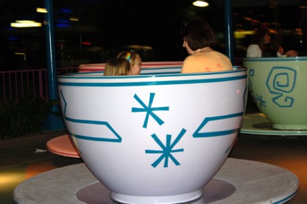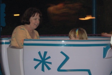 Daddy, Grandpa, Mommy, and Luca rode in the non-spinning tea cup