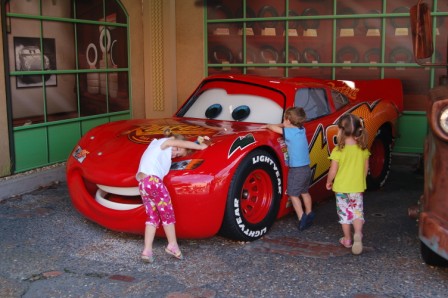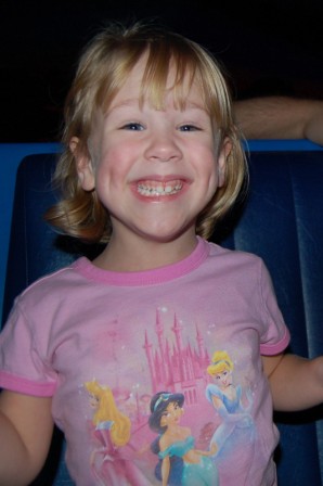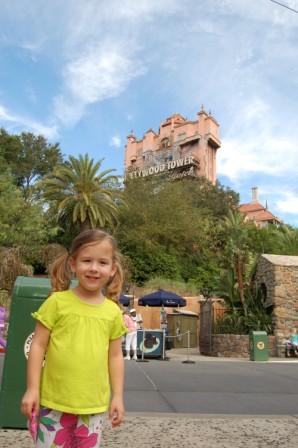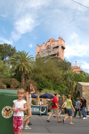 Ella in front of the new American Idol entrance...both girls about to get on the Star Wars simulator ride