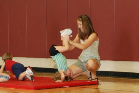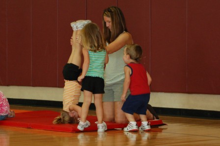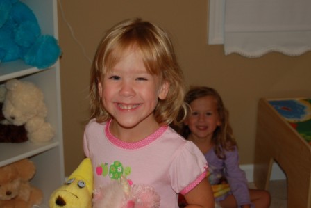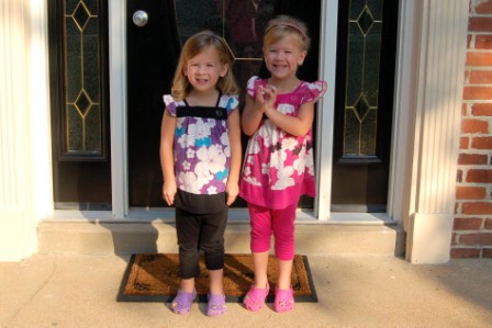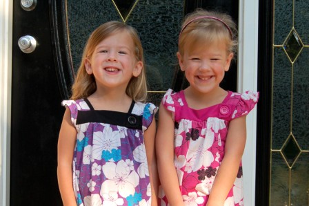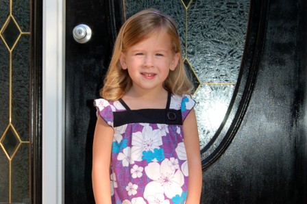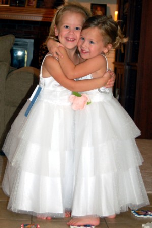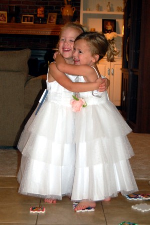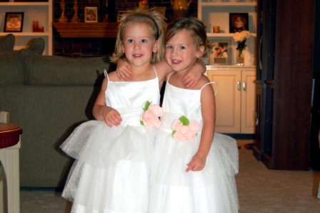 Trying on flower girl dresses for Rachel and Brian's wedding