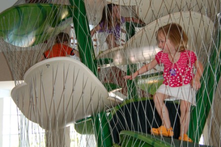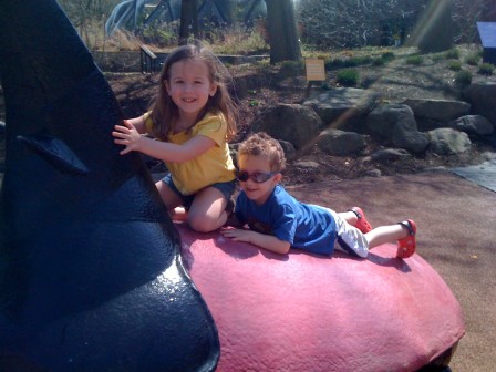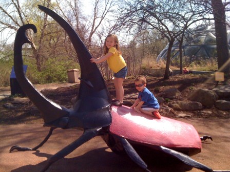 Ella and Luca climbing on the bug
