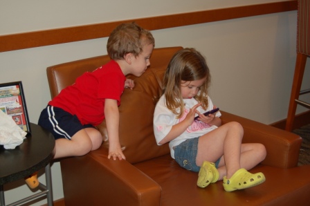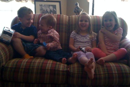 Trying to get a picture of all the grandkids in bad lighting with a camera phone...not successful