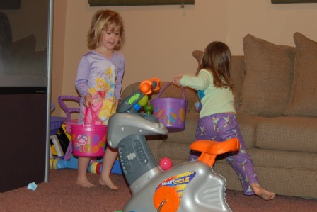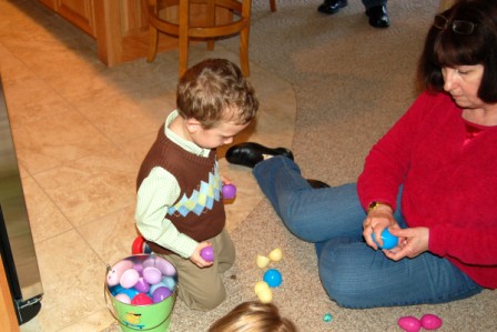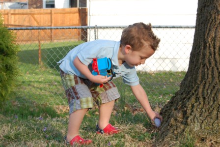 Ella and Perry hunting eggs