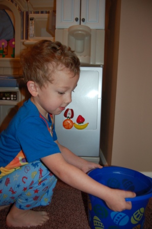 Looking in all the boxes...Luca LOVED "T" (train)