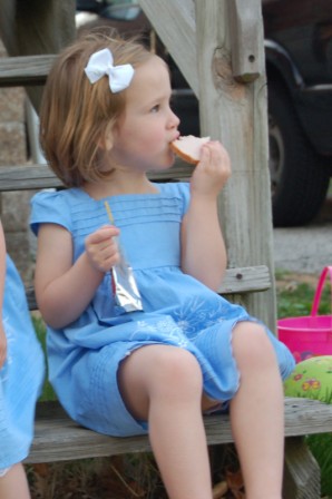 Perry and her turkey...Ella wishing she had some turkey