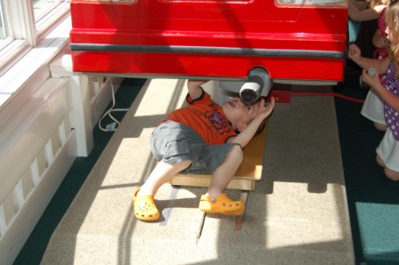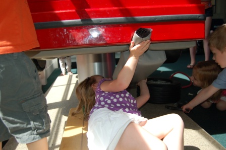 On the way to lunch we passed the fire station and got to go in and see the trucks, ring the bell, and got some free hats!