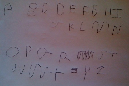Ella practicing her writing..."Papa John" and "Papa Steve"