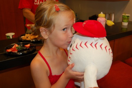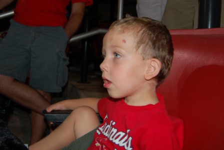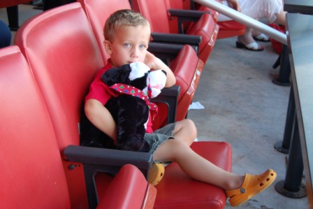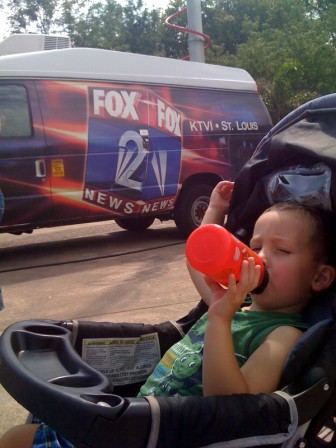 Since Luca and I had 3 hours to kill while P&E were at camp, we went to the St Louis Rams Mascot Unveiling