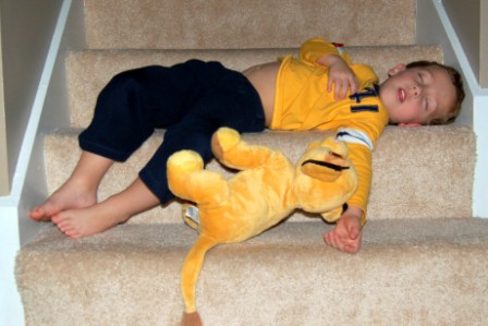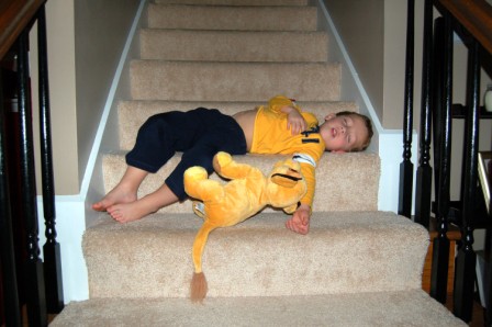 THIS is where he chose to fall asleep for his nap...I moved him to the couch after I found him like this
