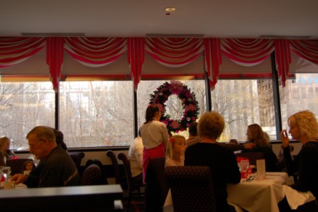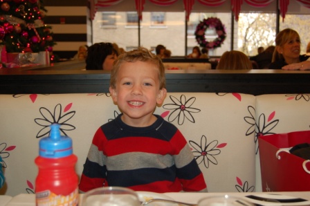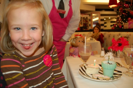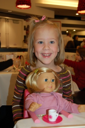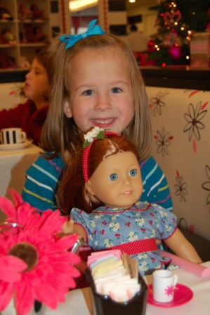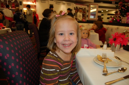 Ella and Perry in the American Girl Cafe for brunch