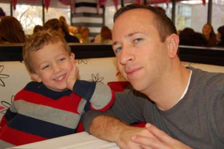 Luca and Daddy being good sports in the land of pink
