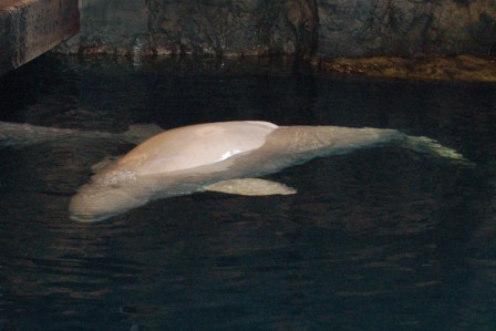 Posing with the penguin...Beluga whale