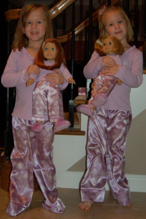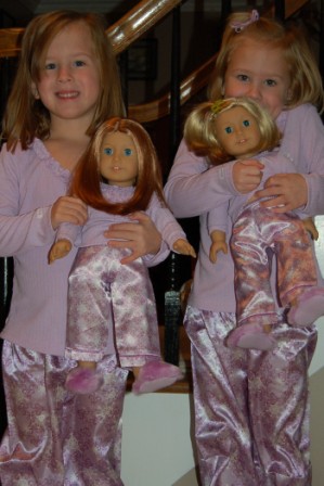 Back home with our dollies and matching jammies