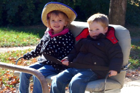 Cate and Noel on the donkey cart...Drew riding the horse