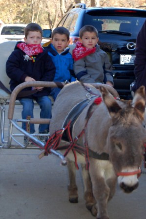 Jack, Noel, and Drew on the donkey...cousin Noel