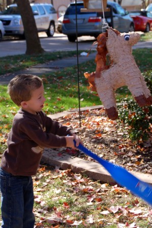 Perry, Ella, Luca hitting the pinata