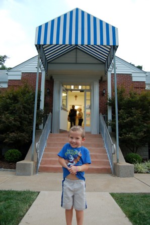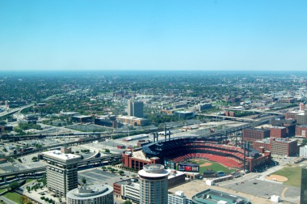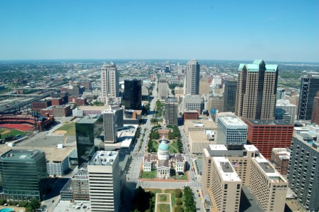 Looking out...Perry's first comment was "I can't see the Arch!"