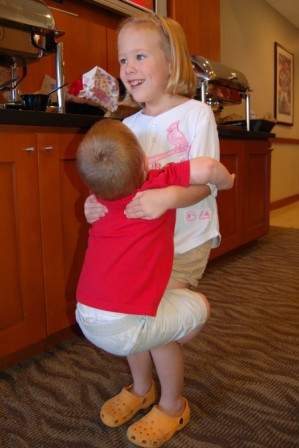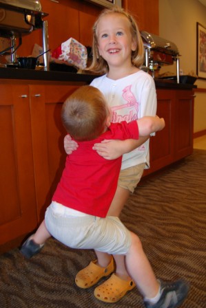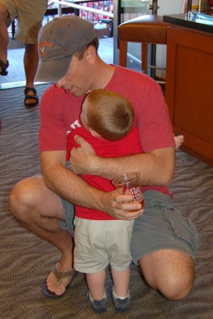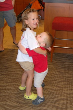 Luca trying to give Noel a goodbye hug...Noel giving Uncle David a goodbye hug