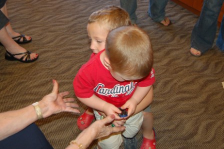 Dave's cousin Justin, Mandy, and Hudson...Grandma Anne and baby Hudson