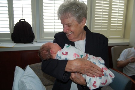 Great Grandma Teppie, Great Aunt Carole, and Cousin Courtney visiting