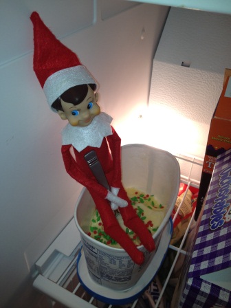 Elfie turned our milk green and hid in the car so he could go to the Advent services at school with us