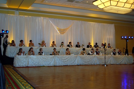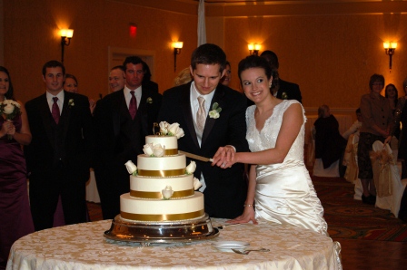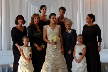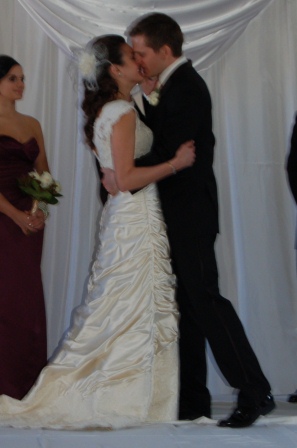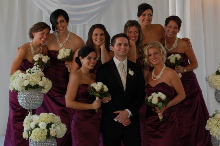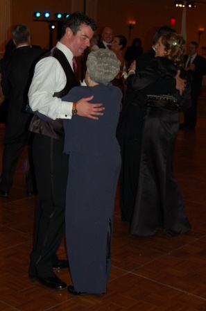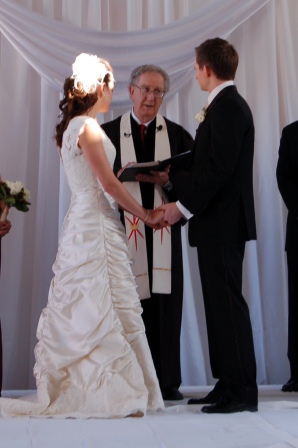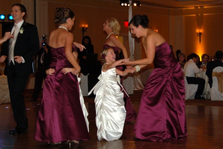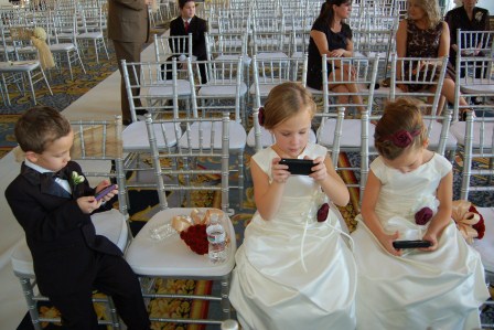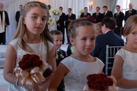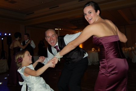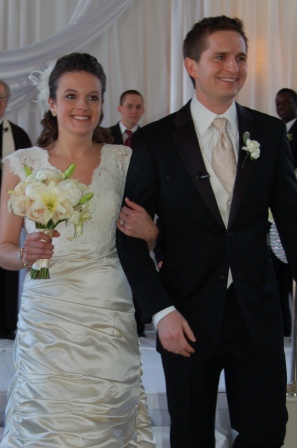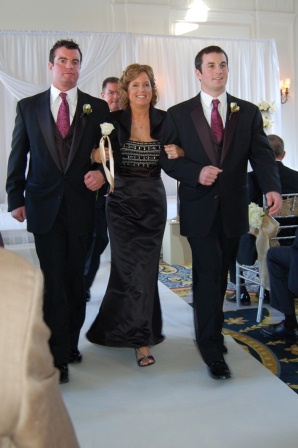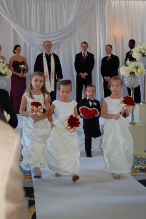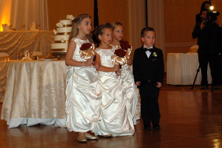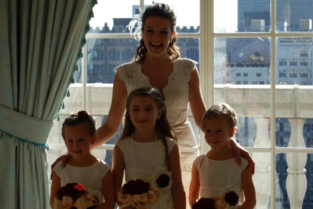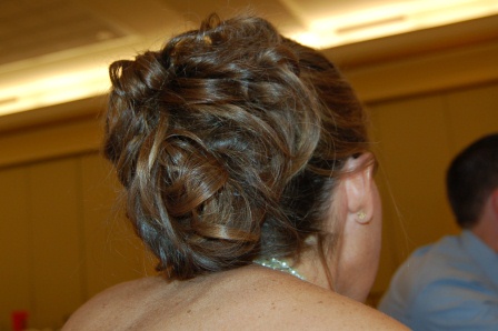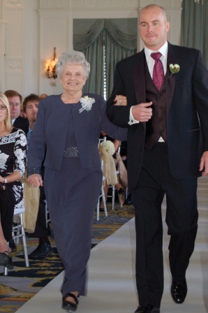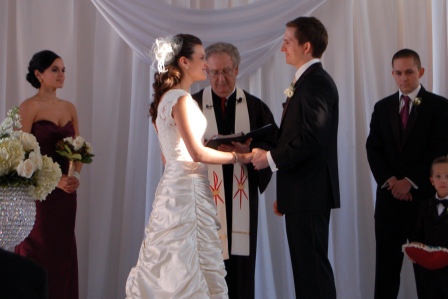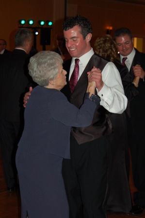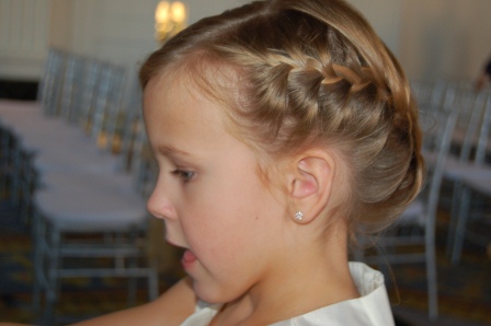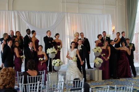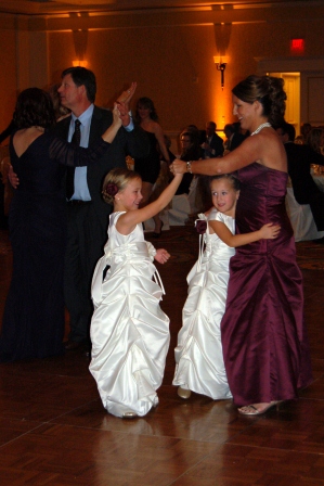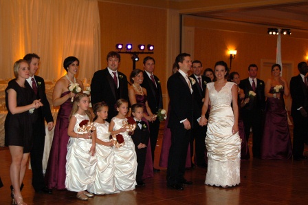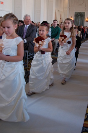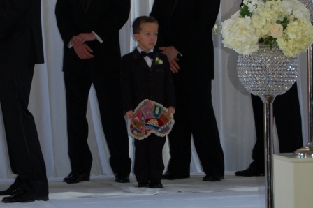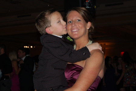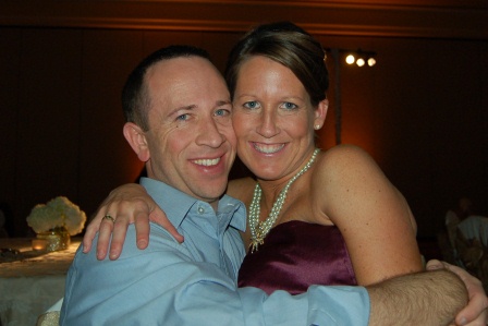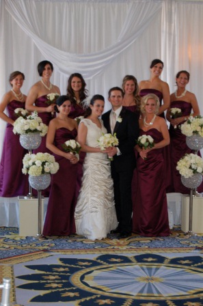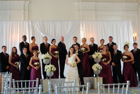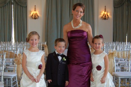 Going to the rehearsal dinner, posing with the big tree in the hotel lobby