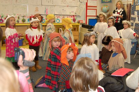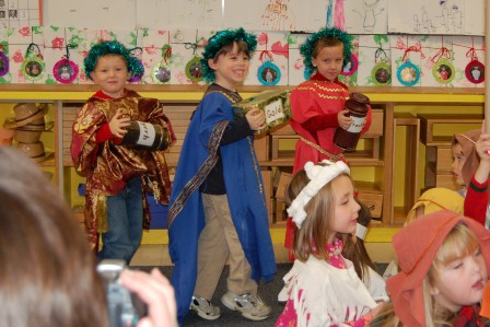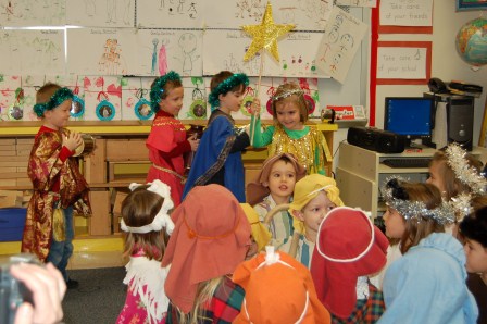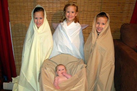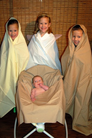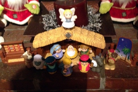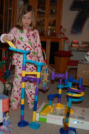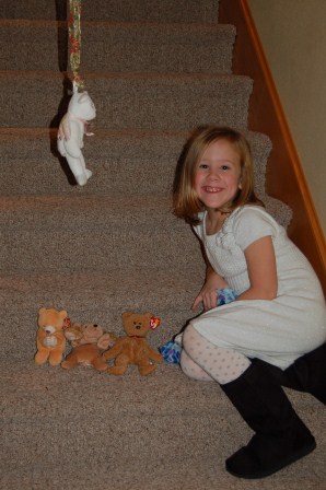 Perry created a nativity set with beanie babies...Ella playing with Luca's marble set
