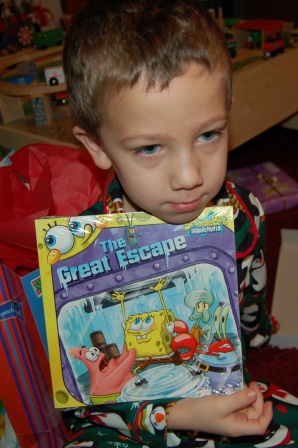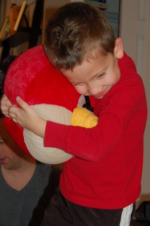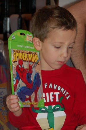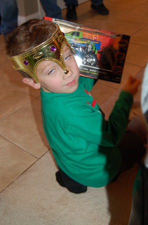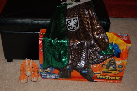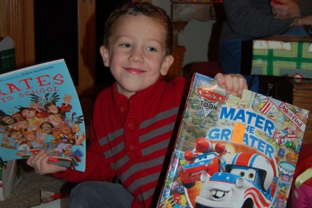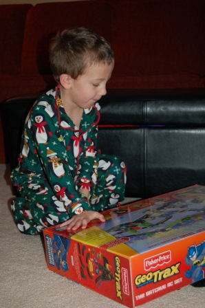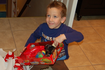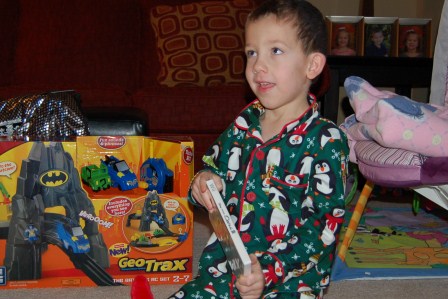 Luca is happy about the Cars 2 Wii game and his Batman GeoTrax