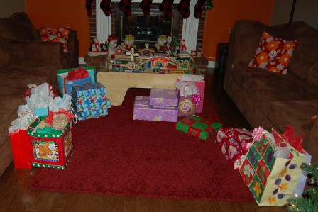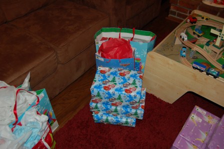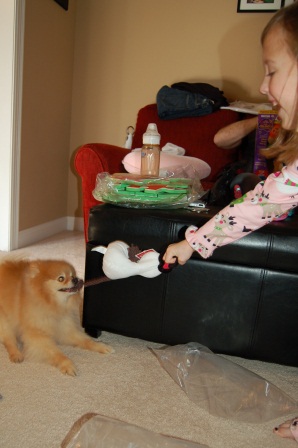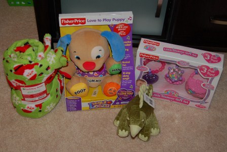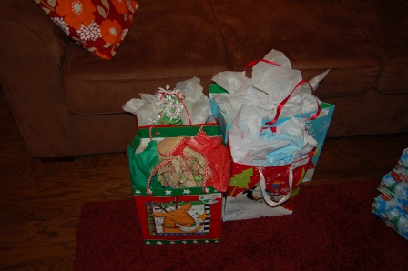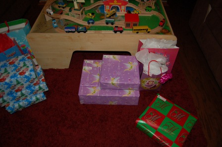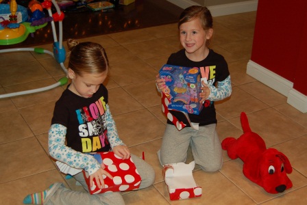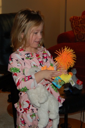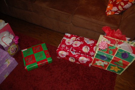 Presents from Mommy and Daddy and siblings...Carly's loot
